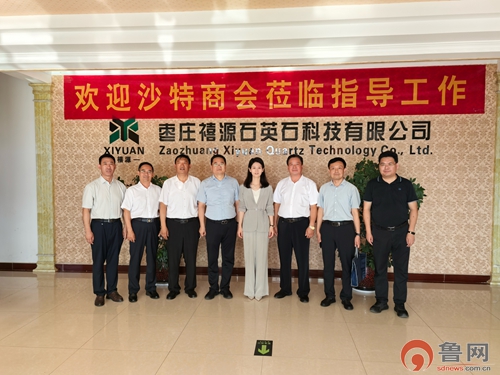 7月23日下午,枣庄市侨联党组书记、主席、一级调研员龙晓华伴随沙特山东省总商会筹委会主任沈福宝、沙特山东总商会筹委会秘书长沈印国一行,走进山亭区涉侨企业—山东禧源石英石有限公司、薛城区涉侨企业—山东中力阀门有限公司,推进涉侨企业与海外侨商侨领深化对接沟通。山亭区委常委、宣传部部长、统战部部长、区政协党组副书记刘杰,西集镇党委书记徐伟,山东禧源石英石有限公司董事长王保国、山东中力阀门有限公司董事长杜宜俊等参与洽谈。